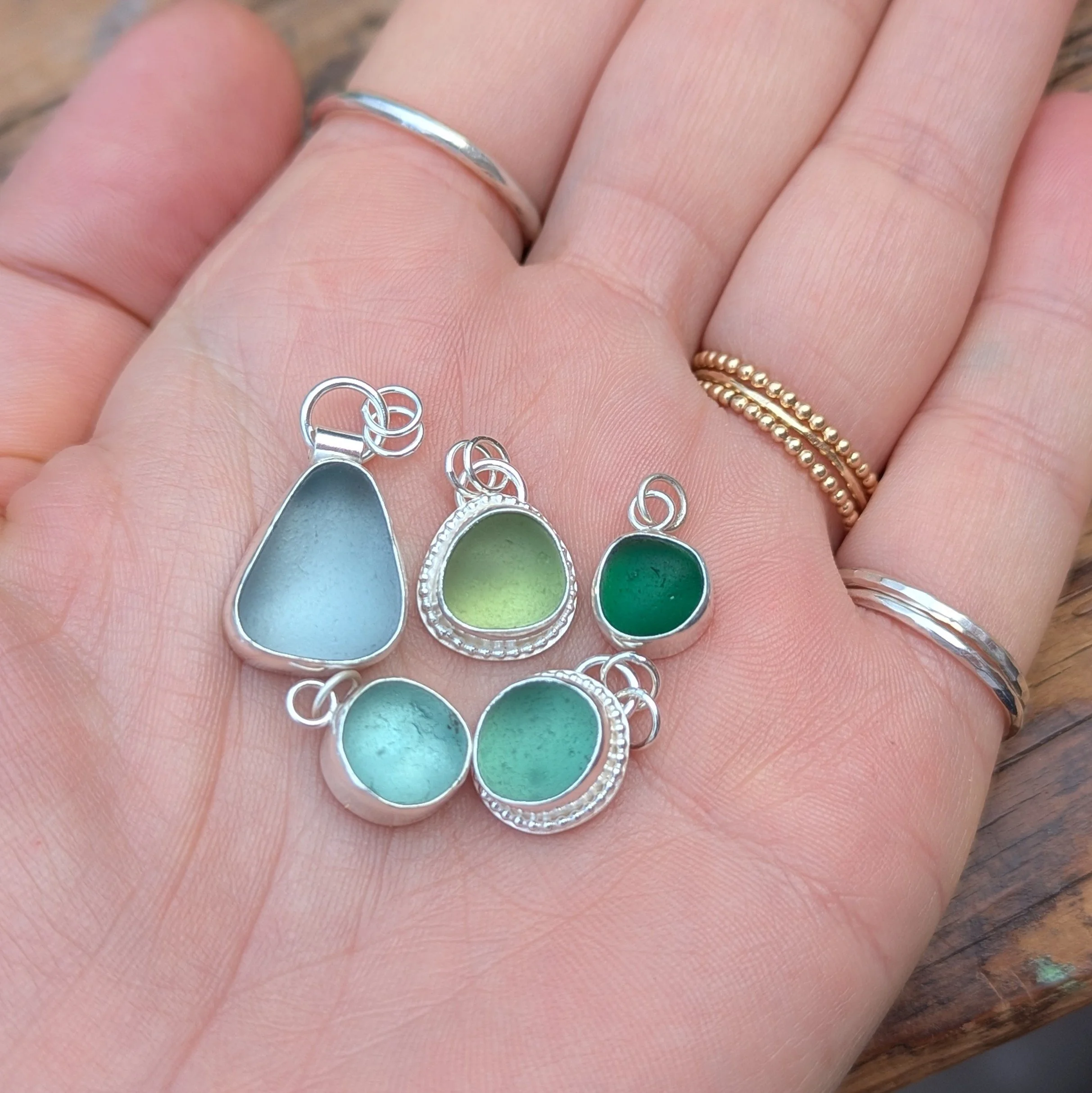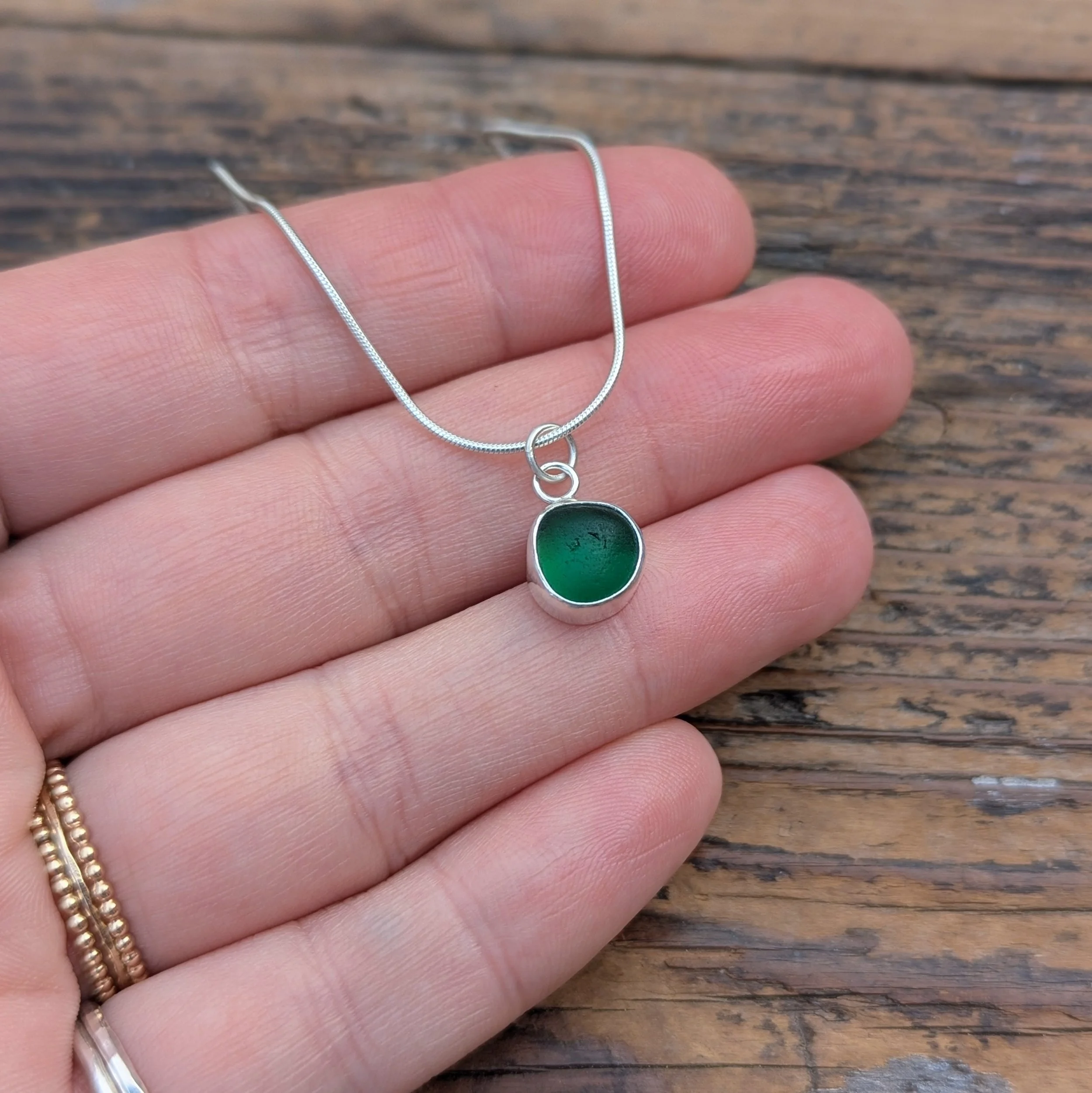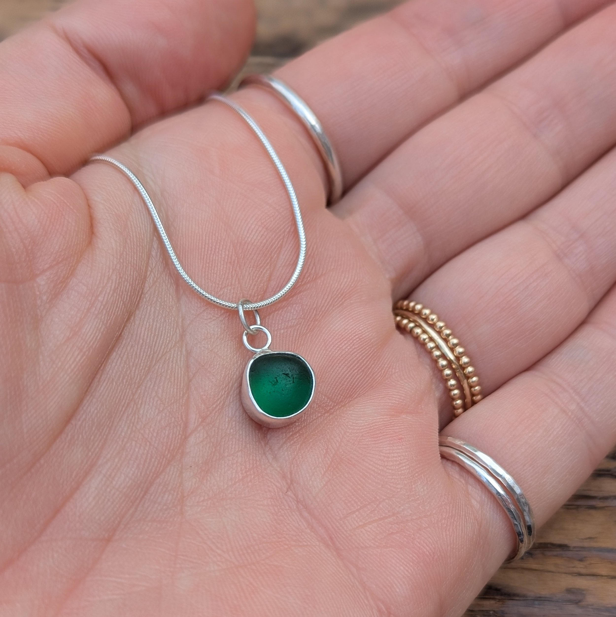 All photos are taken in natural daylight with no filters. Colours may vary slightly depending on your screen, and as with all true sea glass, the gem will appear to shift shades in different lighting, often glowing beautifully in direct light.