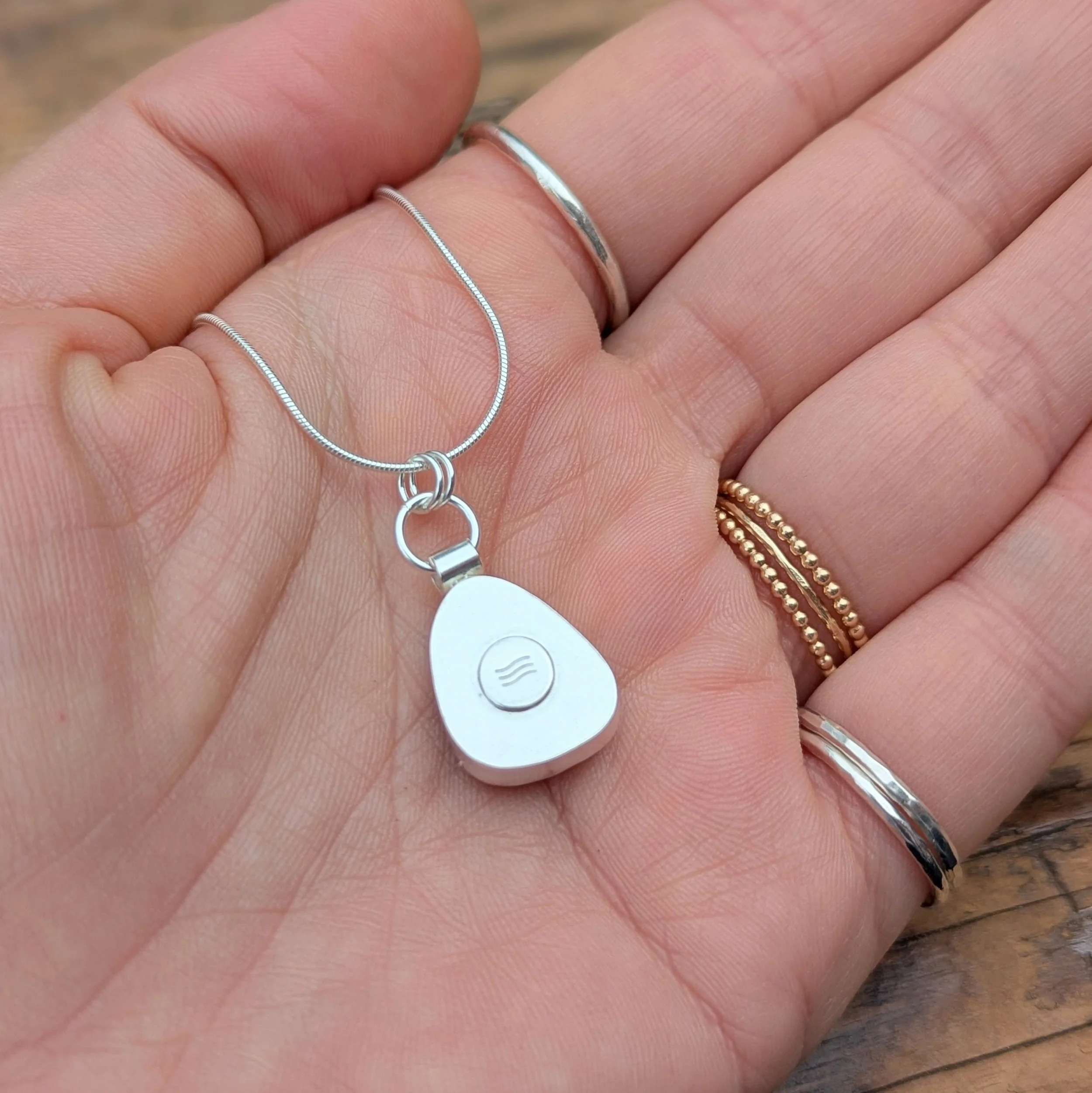 I have handmade the setting specifically for this gem using only 100% recycled solid silver so you can be assured of quality and durability. It is finished with my makers mark of 3 waves on the back and is available as the pendant only, to add to your own chain, or add on a silver chain in your preferred length/style from the options. Your necklace will come with a microfibre polishing cloth and all my gift boxes and packaging is 100% from sustainable sources and recyclable.