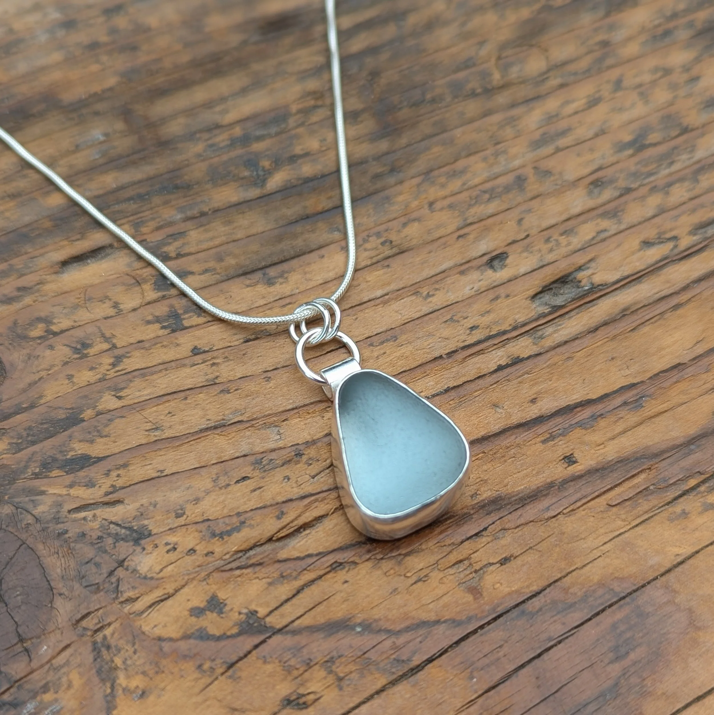 This pendant necklace features a piece of genuine Cornish sea glass set in a handmade recycled silver setting. An item you'll reach for every morning, each one is a piece of the ocean to take with you wherever you go and captures the calming spirit of the coast.